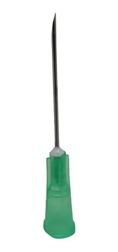 Informações: *Cânula siliconizada que desliza facilmente, diminuindo a dor do paciente. *Bisel trifacetado que torna a aplicação mais fácil e reduz a dor do paciente. *Canhão colorido para facilitar a identificação visual do calibre da agulha. *Protetor plático que garante a total proteção da agulha para um melhor acoplamento à seringa.