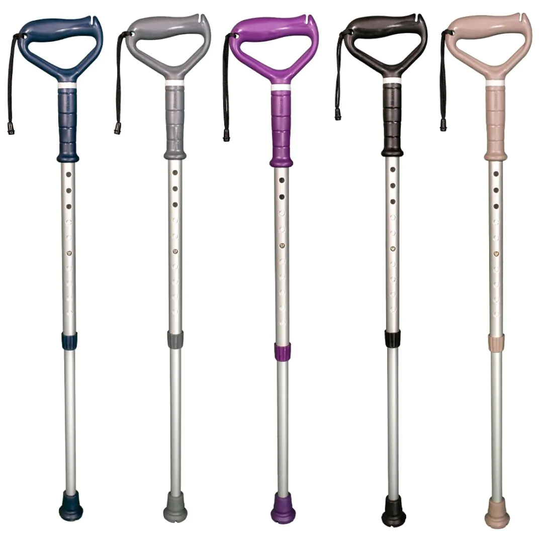 1. Ajuste de Altura: Ajuste a altura da bengala de forma que, com o usuário em postura ereta, o cotovelo fique em uma leve flexão de 20 a 30 graus.