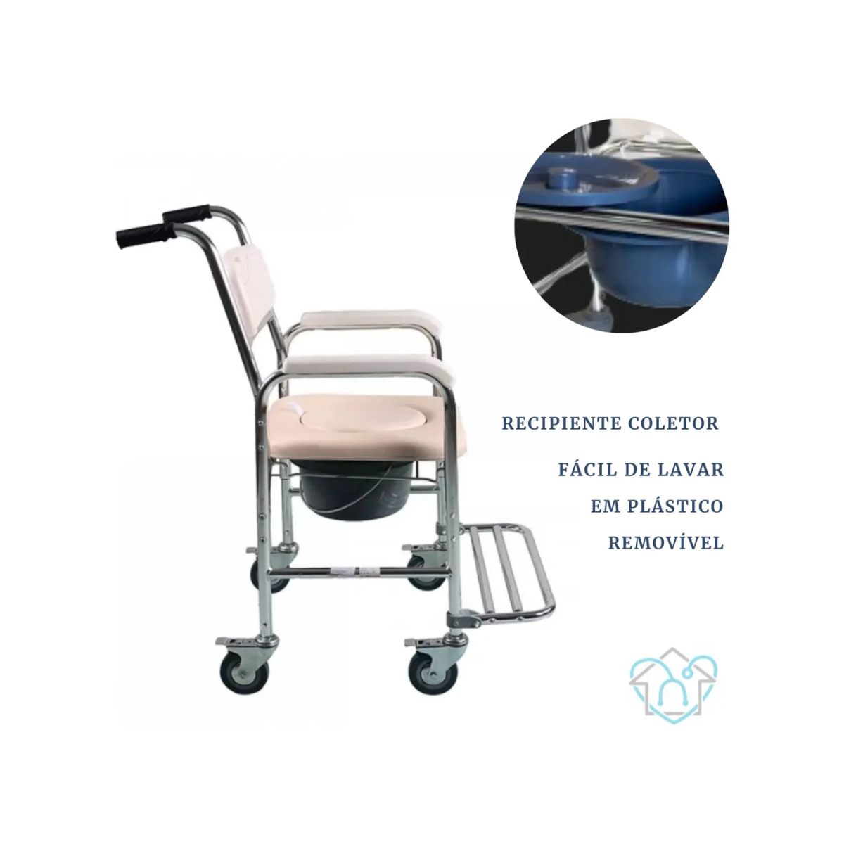 Cadeira Higiênica em Alumínio com Rodas e Coletor Superlux Mobil