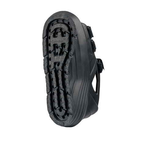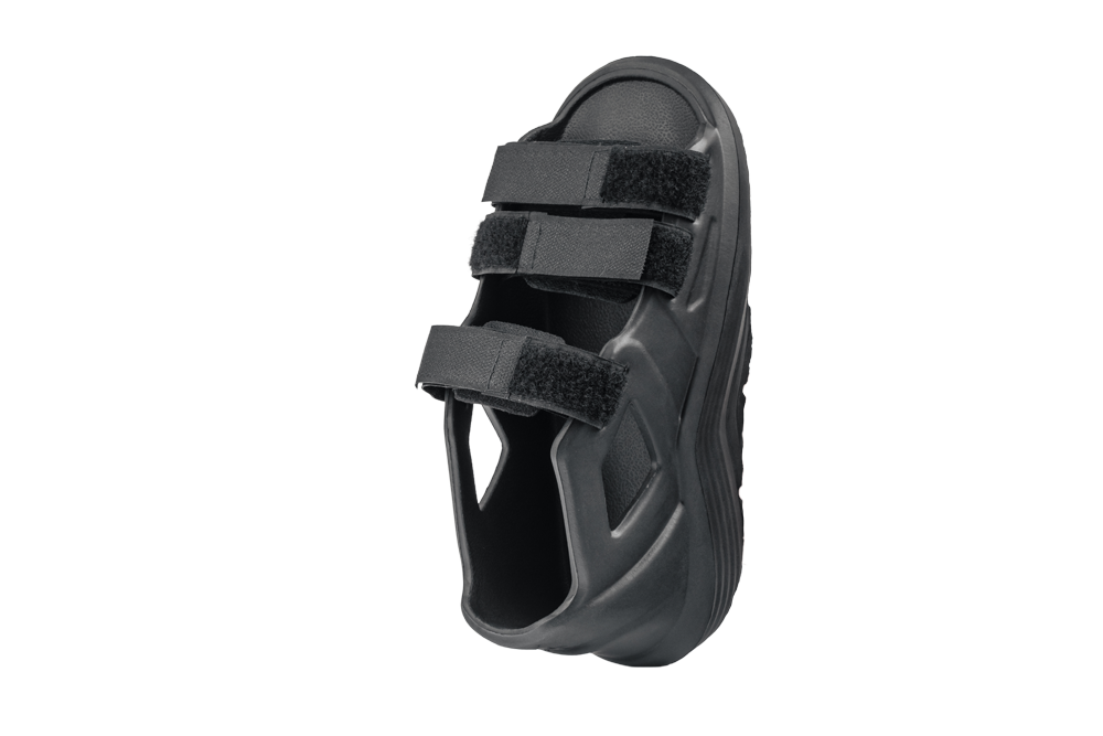 • Descarga de Peso Total: O solado interrompido na metade do pé garante que os dedos fiquem “flutuando”, evitando qualquer impacto ou pressão que possa causar dor ou deslocar pinos cirúrgicos.