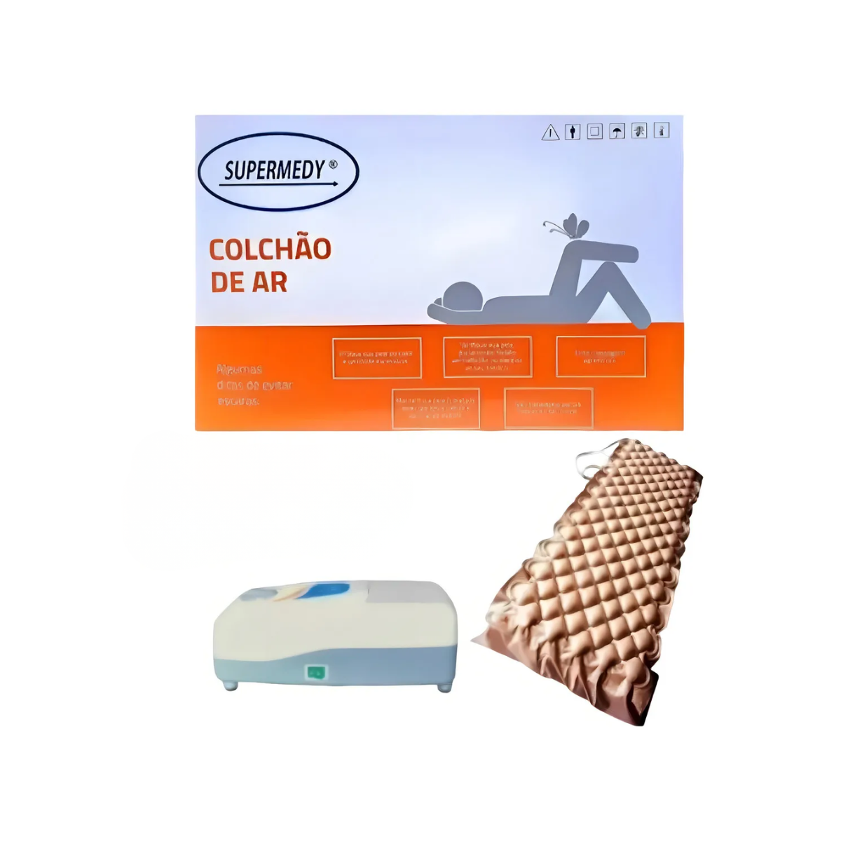 Instalação: Coloque o colchão inflável sobre o colchão comum do paciente.