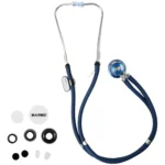 Seu auscultador também é biauricular e possui cinco tipos de auscultas diferentes, cada uma para um tipo, sendo elas: Tipo Fechado (com uma membrana de plástico rígido), Grande, Pequeno, Tipo Aberto e Médio. Sua desinfecção é bastante facilitada.