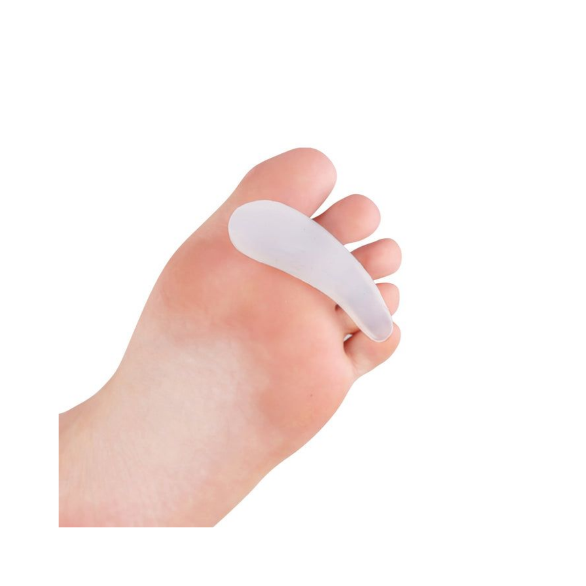 Posicione a “almofada” de silicone logo abaixo dos dedos, preenchendo o arco natural que se forma pela deformidade.