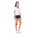 Fechamento: Passe a tira de velcro por trás do joelho e prenda na frente ou lateral, ajustando a pressão. A faixa deve ficar firme, mas não deve garrotear a perna.