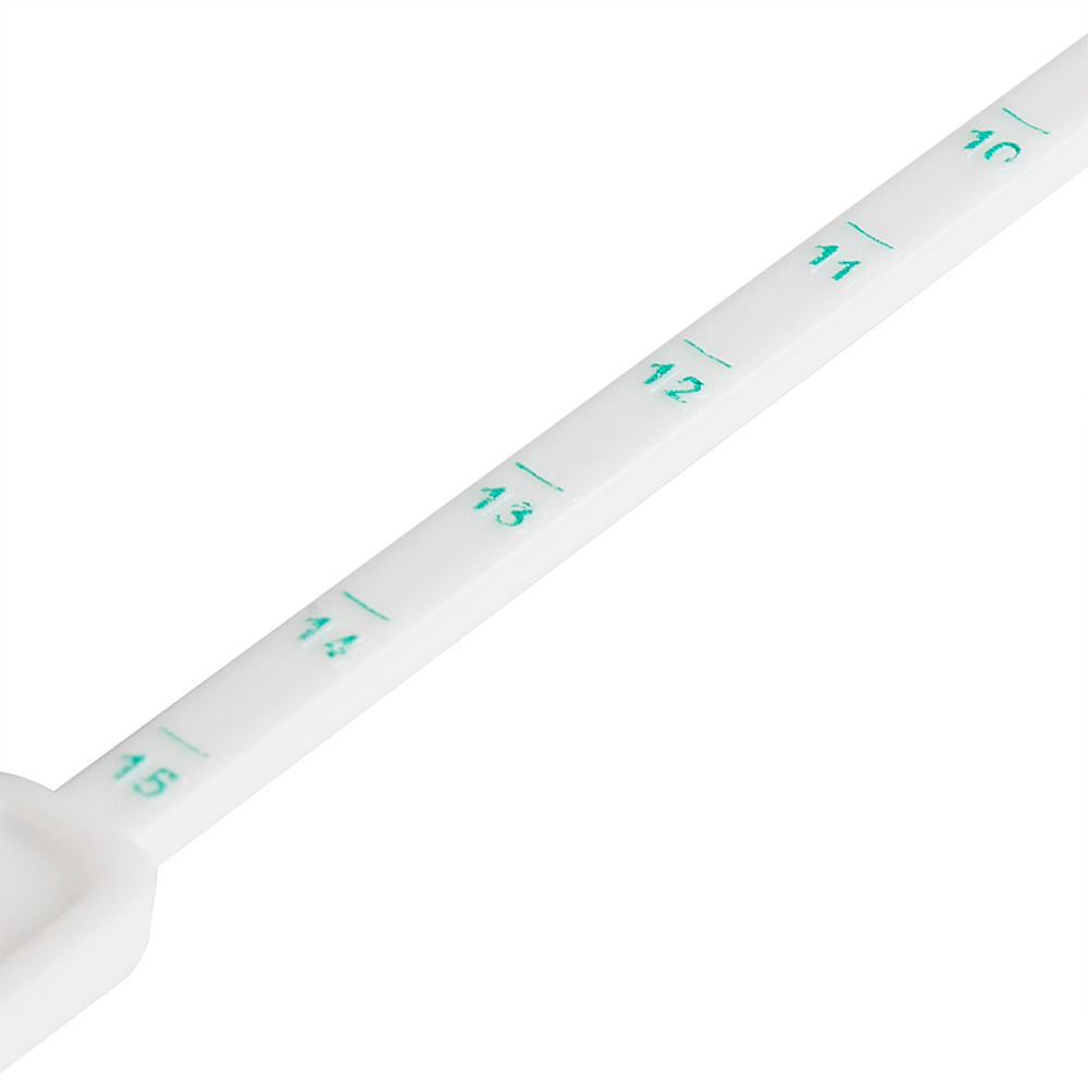 Fabricado em poliestireno de alta qualidade e com formato levemente curvo, o dispositivo permite medições precisas graças ao seu segmento centimetrado de 15 cm com graduação de 4 a 15 cm, facilitando a avaliação da distância entre o colo uterino e o fundo da cavidade uterina.
