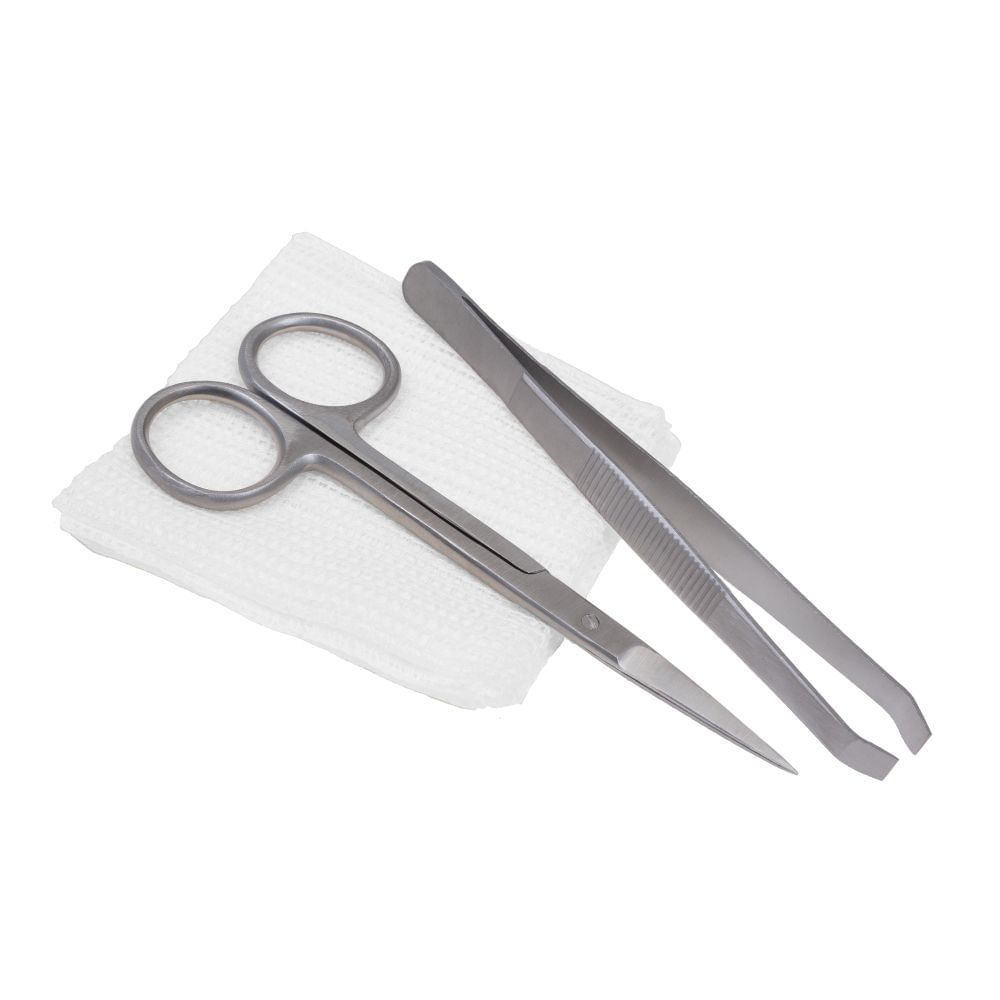 01 Pinça Anatômica: Para auxiliar na preensão e remoção do fio cortado com delicadeza.