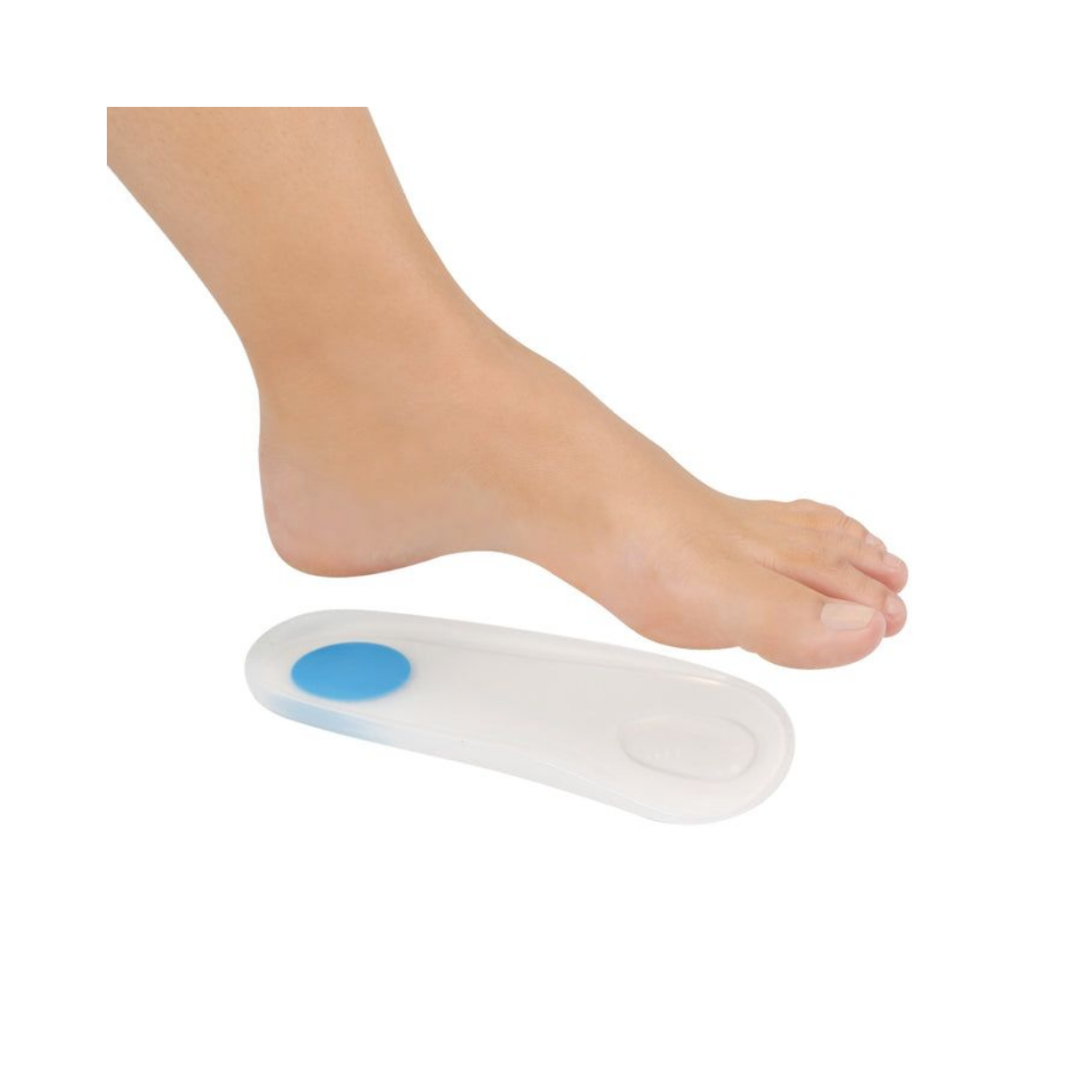 A Palmilha 3/4 siligel com piloto e ponto azul (Ref. 5002) é um dispositivo ortopédico de alta performance, desenvolvido especialmente para quem sofre com dores na planta do pé, metatarsalgia e calosidades. Seu design ¾ é estratégico, pois não ocupa espaço na ponta dos sapatos, sendo ideal para calçados mais justos ou sociais.