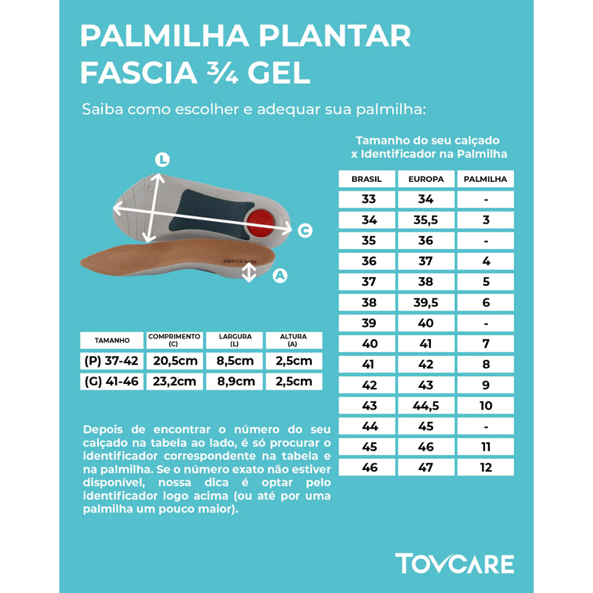A Palmilha para Fascite ³/4 – Tovcare é uma solução ortopédica de alta performance, desenhada especificamente para quem sofre com dores agudas no calcanhar e na planta do pé. Sua estrutura combina um suporte rígido para o arco longitudinal com amortecimento em gel de tripla densidade, aliviando a tensão sobre a fáscia plantar e distribuindo o peso corporal de forma equilibrada a cada passo.